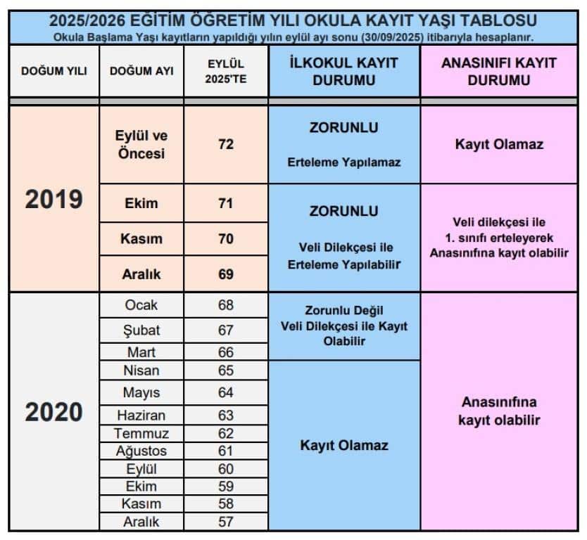 Her yıl Temmuz ayında MERNİS adres bilgileri e-okul sistemine aktarılır. Kayıtlar aktarıldıktan sonra okul öğrenci kaydı başlar. Anasınıfı,Anaokulu, ilkokul 1. sınıf ve ortaokul 5. sınıf öğrencilerinin e-kayıt sonuçlarına, e-Devlet Kapısı'nda "Milli Eğitim Bakanlığı İlköğretim Okulları Adrese Göre Kayıt Okulu Sorgulama (e-Kayıt)" hizmeti üzerinden ulaşılabilirsiniz.